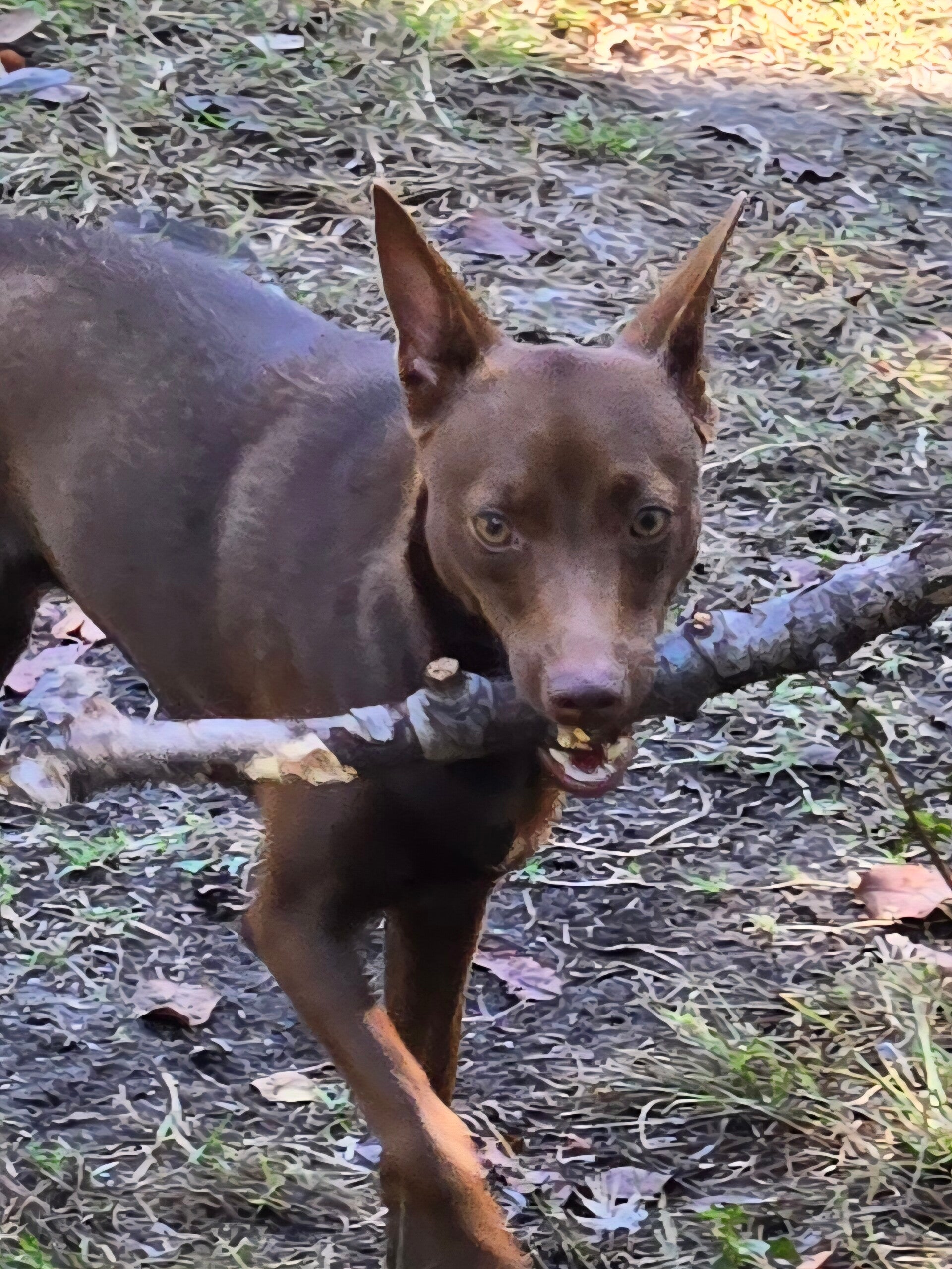 Taqui is a beautiful chocolate NKC Treeing Feist and Arlowe is a stunning natural bobtail Merle NKC Mountain Feist.